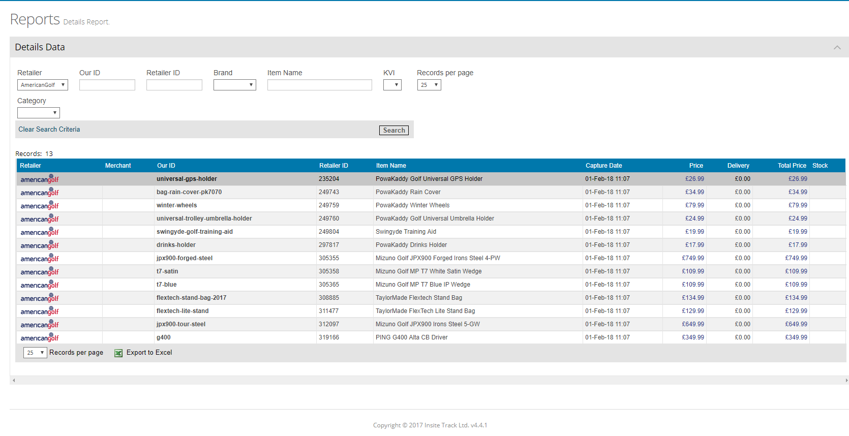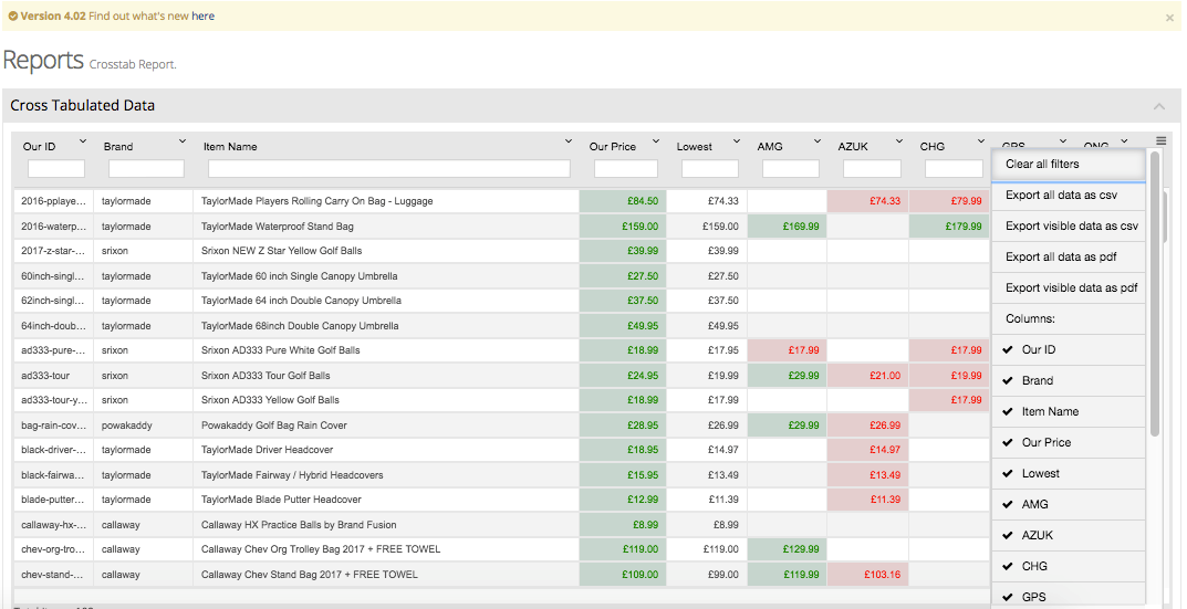The details report shows the Our ID that is matched with the Retailer ID and also the price that the retailer is selling that product at. This is very useful for identifying the prices of your competitors based on a specific product. For example, optimising your best products to have the best competitive price. Take it the extra mile by integrating stock availability, delivery information and maximising your profit margin.