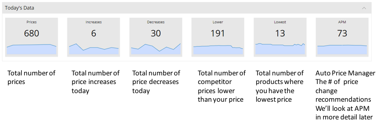 Today’s data is the first thing you will notice when you log into the system. This summarises how you are competing in your respective markets. With this in mind, quickly identify key changes and any trends that need looking into. By clicking on any of the tabs, it will redirect you to more in-depth information that you require.